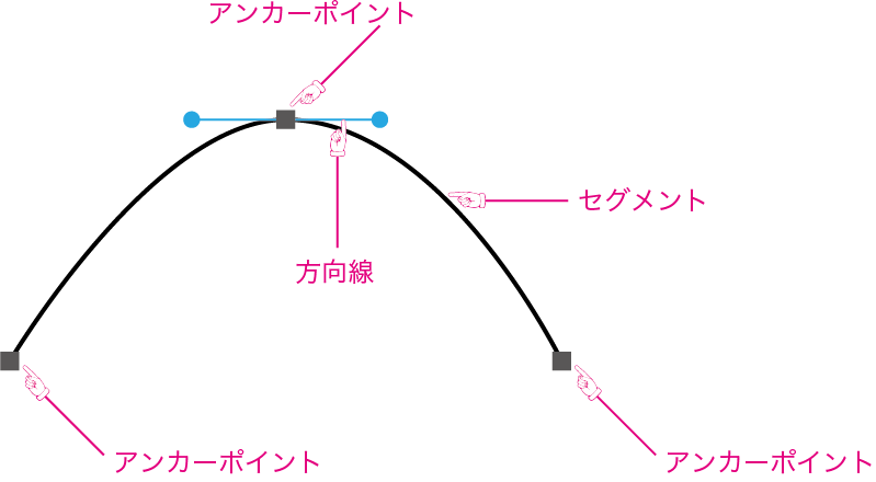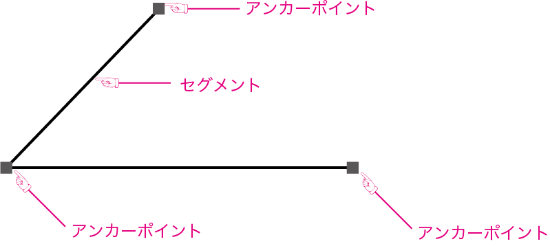 アンカーポイントどうしを結ぶ線をセグメントといいます。