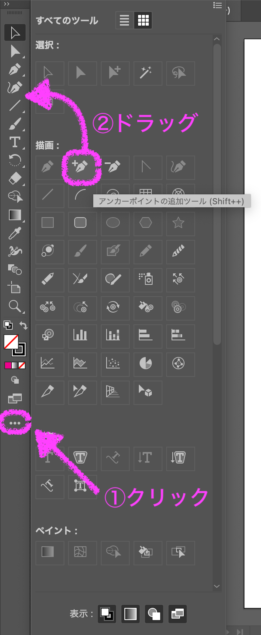 - イラストやグラフィック制作に使うさまざまなツールを選択します。