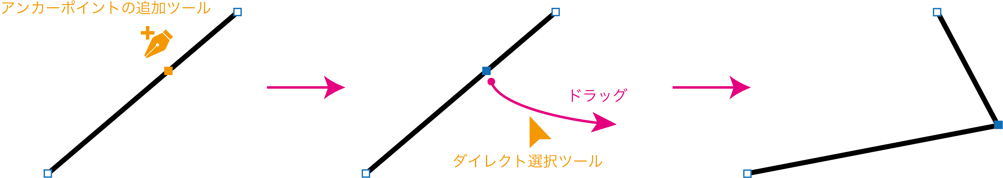 直線にアンカーポイントを追加すると、直線を折り曲げることができます。