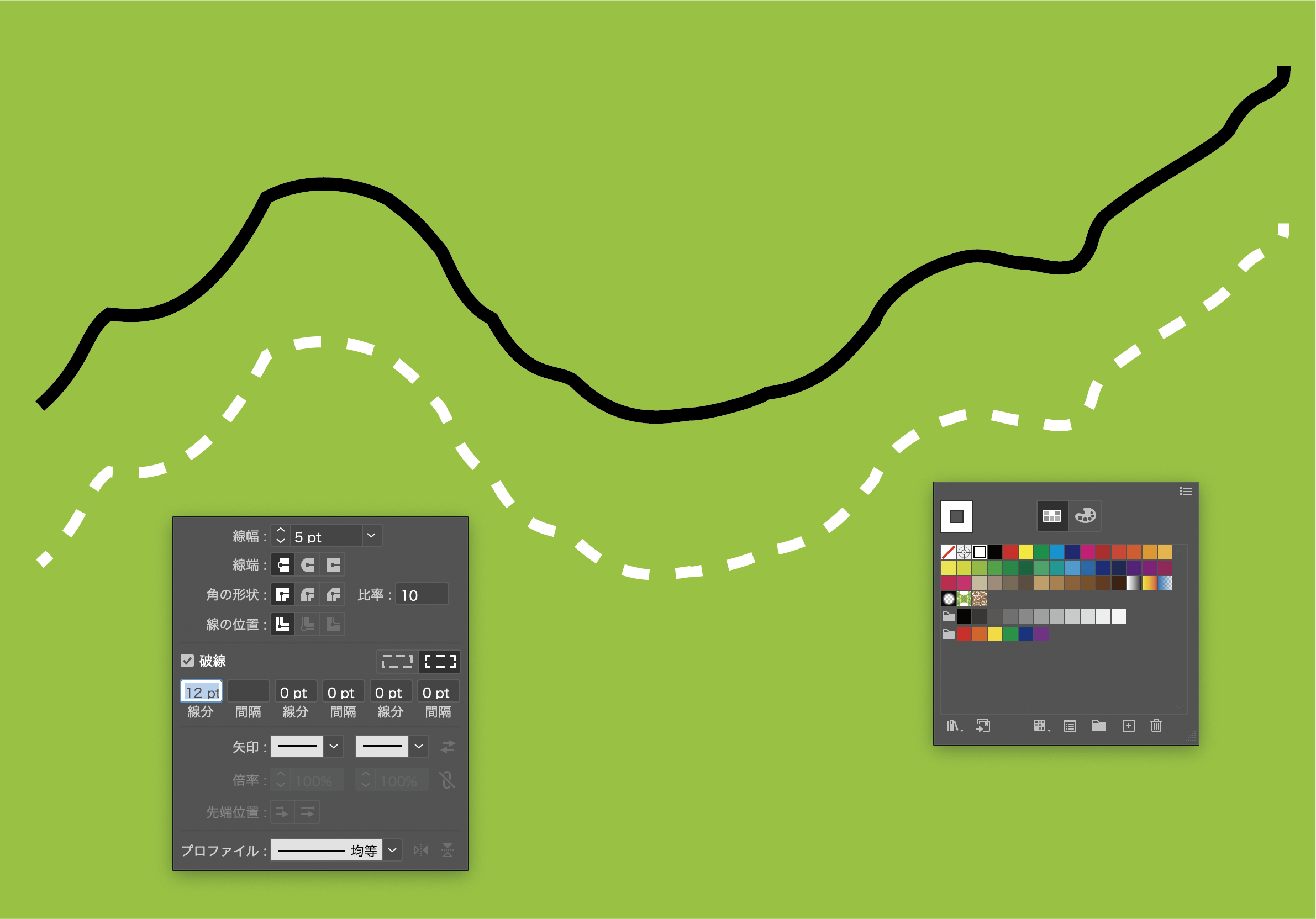 作りたい線の概形をつくり、線の太さを6ptとします。