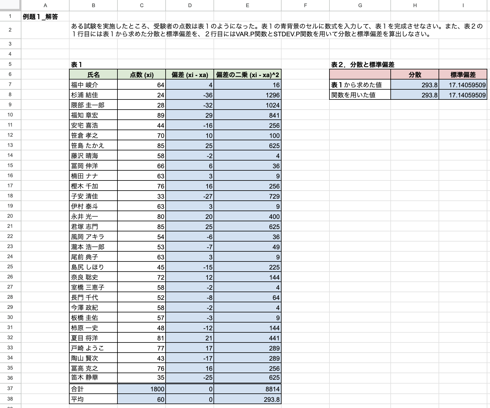(1) 分散と標準偏差